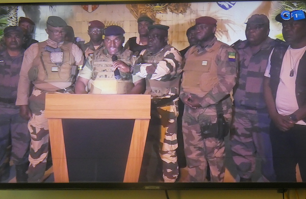 Ce jour 30 août 2023, nous, forces de défense et de sécurité, réunies au sein du Comité pour la Transition et la Restauration des Institutions, CTRI, au nom du peuple gabonais, et garants de la protection des institutions, avons décidé de défendre la paix en mettant fin au régime en place.