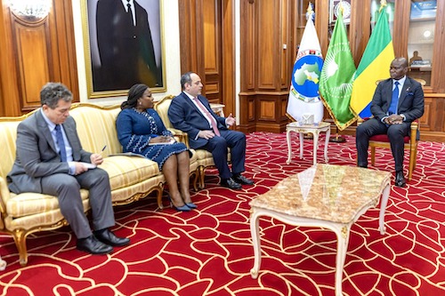Le Président de la République, Chef de l’État, Chef du Gouvernement, Son Excellence Brice Clotaire Oligui Nguema s’est entretenu ce jour au Palais Rénovation avec Monsieur Dimitri S. Kerkentzes, Secrétaire Général du Bureau International des Expositions (BIE) en présence de Madame Nina Abouna, Commissaire Général aux Expositions du Gabon, Déléguée auprès du BIE.
