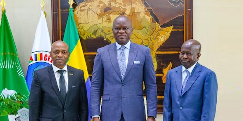 Son Excellence Brice Clotaire Oligui Nguema, Président de la République, Chef de l’État, Chef du Gouvernement, a reçu ce jour, au Palais Rénovation, Leurs Excellences Umaro (...)