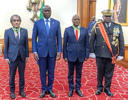 Libreville, le 06 septembre 2025-À l’occasion d’une cérémonie tenue ce lundi au Palais Rénovation, le Président de la République, Chef de l’État, Chef du gouvernement, Son Excellence Brice Clotaire Oligui Nguema a honoré messieurs Shuji Noguchi et Gilberto Da Piedade Verissimo respectivement Ambassadeur du Japon et président de la commission de la Communauté Économique des États de l’Afrique Centrale (CEEAC).