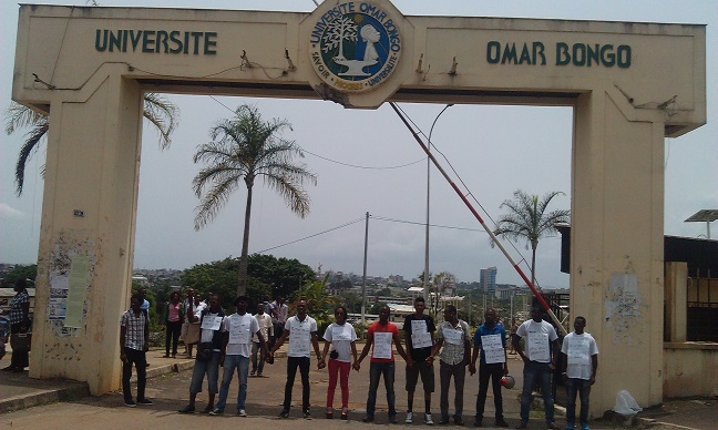 Ce vendredi 06 mars, une ambiance particulière se dégageait autour du portail de l’entrée de la principale université du pays, pour preuve des étudiants y étaient debout, unis et formant une chaine. Cette mobilisation qui contraste avec l’absence de cours et le gel des enseignements perpétrés par les enseignants membres de la dynamique unitaire étaient une réponse « non violente au silence des autorités et de la communauté nationale qui ne s’émeut aucunement face à la situation de l’Ecole gabonaise qui dépérit chaque jour. »