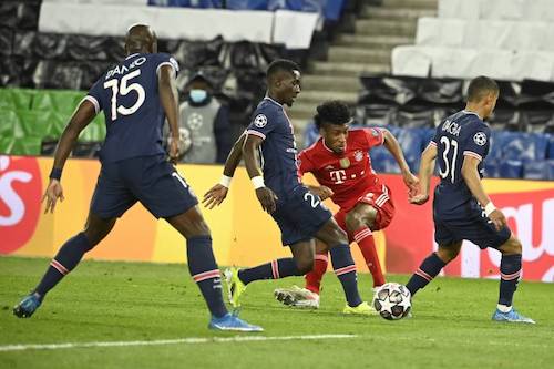 Cependant, les allemands se voient récompensés de leurs offensives à la 41e minute par le but d’Eric Maxim Choupo Moting, redonnant de l’espoir au camp bavarois. Piégés entre un possible second but allemand et l’éventualité d’une égalisation, Paris multiplie les offensives par l’intermédiaire de son trio Mbappé-Neymar-Di maria qui n’est pas passé loin du hold-up à l’heure de jeu. Acculé dans sa moitié de terrain, Paris a plié mais n’a pas rompu.