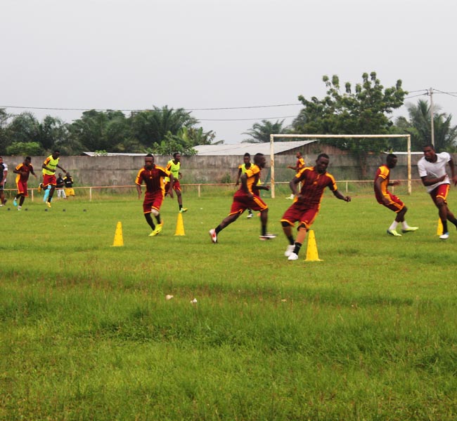 Arrivés hier à 16h30, les joueurs entrainés par Guy Anatole Obame Mboumba, se sont aussitôt rendus au stade pour une séance d’entraînement.