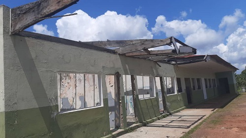 Ce bâtiment a été l’objet, il y a plusieurs mois déjà, d’une catastrophe naturelle ; « c’est une tornade qui a emporté le toit depuis plus de deux ans et on est là, on attend. Nous avons écrit à qui de droit » explique, résigné, le major du Centre.