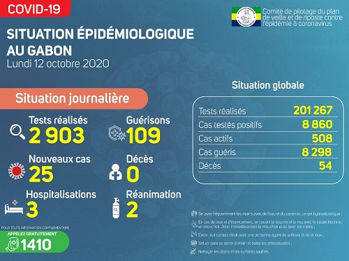 Situation épidémiologique du lundi 12 octobre 2020