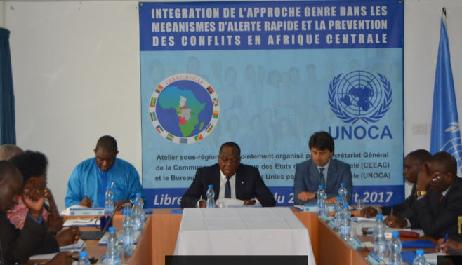 Le siège de l’UNOCA a servi de cadre à l’ouverture, ce mercredi 2 août 2017, d’un atelier sous-régional sur « l’intégration de la dimension Genre dans l’alerte précoce et la prévention des conflits en Afrique centrale ». Jusqu’à vendredi 4 août, la trentaine de participants concernés discuteront des questions liées à l’égalité hommes/femmes. Ils réfléchiront aussi et surtout sur les voies et moyens de renforcer les capacités du Secrétariat de la Communauté économique des Etats d’Afrique centrale (CEEAC) dans ce domaine. A cet égard, l’expérience de la Commission de la Communauté économique des Etats de l’Afrique de l’Ouest (CEDEAO) a été sollicitée, en particulier en ce qui concerne la prise en compte des enjeux relatifs à l’égalité des sexes dans le Réseau de l’alerte précoce de la CEDEAO (ECOWARN). L’expertise d’ONU-Femmes enrichit les échanges interactifs auxquels contribuent les représentants de plusieurs Ministères en charge des questions liées au Genre venus de certains pays d’Afrique centrale.