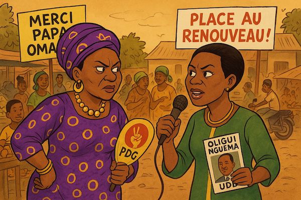 Le cœur du débat à Bongoville se résume à une opposition fondamentale : le discours de la reconnaissance obligée envers les Bongo, porté par le PDG, s’oppose à la liberté de choisir un avenir différent, défendue par l’UDB.