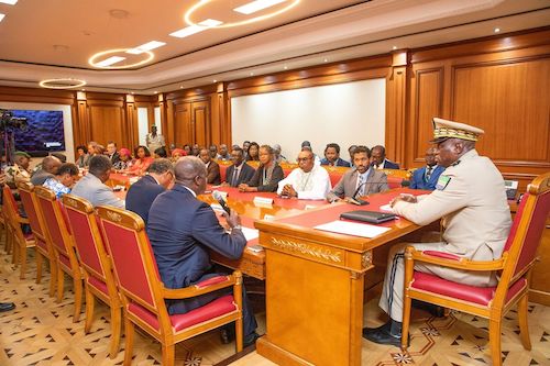 Le Président de la Transition, Président de la République, le Général Brice Clotaire Oligui Nguema, a reçu ce jour en audience une délégation d’observateurs nationaux et internationaux conduite par le ministre de l’Intérieur et de la Sécurité, Herman Immongault.