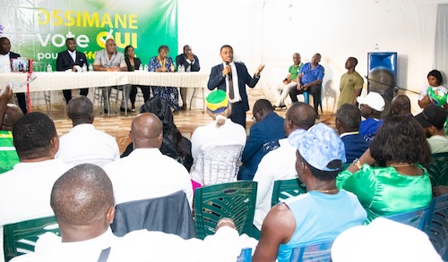 Prenant la parole au cour de des échanges comme membre du comité des sages et natif du département, Bertrand Zibi a tout d’abord voulu rassurer le bureau d’Ossimane sur sa disponibilité à soutenir leur mouvement mais aussi, à battre campagne pour que le OUI l’emporte au prochain referendum à Minvoul.« Nous lutterons contre les personnes qui passent dans le noir pour vous intimider et menacer à voter pour le non » nous a convié le Nyamoro.