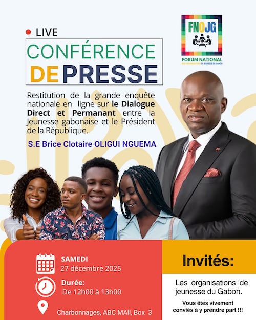 Le Forum National des Organisations de Jeunesse du Gabon (FNOJG) organise, ce samedi 27 décembre 2025, une Conférence de Presse dédiée à la restitution officielle des (...)