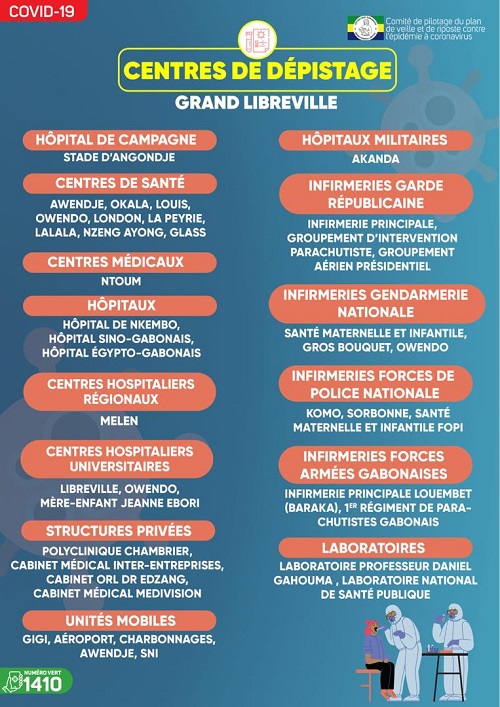 Pour ainsi faciliter le processus imposé par le gouvernement pour se déplacer à l’intérieur du pays ou quitter le sol gabonais, plusieurs centres de dépistage sont mis à la disposition des populations dans le grand Libreville. L’ensemble des mesures prises par les autorités visent à protéger la population gabonaise et freiner la propagation du virus.