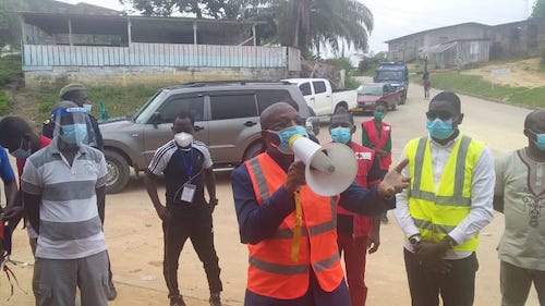 Le samedi 13 mars 2021, le Gouverneur de la province de l’Ogooué-lolo, Jean Bosco Assingabagni, en sa qualité de Président de la coordination provinciale de lutte contre la covid 19, s’est rendu sur le terrain pour une campagne de sensibilisation.
