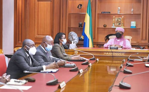 Libreville, le 18 Juin 2021 – Le Président de la République, Son Excellence Ali Bongo Ondimba, a reçu ce jour au Palais du Bord de mer, le Premier ministre Chef du Gouvernement, Madame Rose Christiane Ossouka Raponda qu’accompagnaient Messieurs Lambert Noel Matha, Michael Moussa Adamo, Léon Armel Bounda Balonzi, Brice Constat Paillat et Olivier Nang Ekomie, respectivement ministres de l’Intérieur, de la Défense nationale, des Travaux publics, des Transports, de l’Habitat.