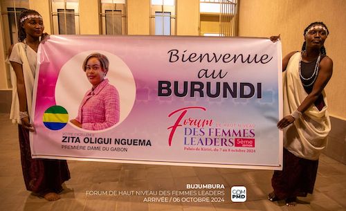 Zita Oligui Nguema participe à la 5e édition du Forum de Haut Niveau des Femmes Leaders, qui se déroulera les 7 et 8 octobre 2024 au Palais de Ririri à Bujumbura, sous le thème : « Investir dans la petite enfance pour bâtir un capital humain solide tout au long de la vie ». Cet événement se tient sous le haut patronage de Son Excellence le Président de la République du Burundi, et est organisé par l’Office de la Première Dame pour le Développement au Burundi (OPDD-Burundi).