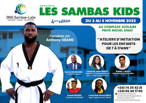 Sous le parrainage de Anthony OBAME, l’ONG Sambas-Labs organise la 4 ème édition des Sambas kids (atelier d’initiation pour les enfants de 7 à 17 ans), du 3 au 5 novembre 2022 au Complexe Scolaire Privé Michel Dirat.