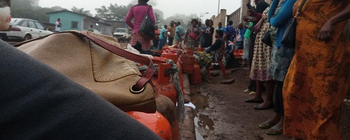 C’est une ville minière sans gaz butane depuis quelques jours. Les ménages sont en manque et sont dans le besoin. Il faut être à l’affût de l’information : ” quand et où le gaz sera livré". Il sonne 6 heures lorsque les élèves, allant à l’école aperçoivent une longue file d’attente. L’on observe chacun devant sa bouteille de gaz vide. Ils attendent être livrés. Ici, la patience est une vertu.” Je suis ici depuis 4h du matin. J’ai pris le risque de partir du quartier ’’Fumier’’ pour la station-service située au quartier Moukaba. J’espère avoir une bouteille. Je me suis armée de patience. Que voulez-vous. C’est le pays qui est comme ça" fustige Joséphine, une mère au foyer.