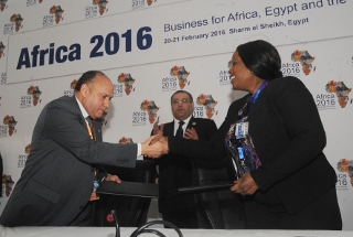 Charm el-Cheikh, le 20 février 2016 – Dans le cadre de la conférence internationale Afrique 2016 organisée par le Gouvernement égyptien, sous l’égide de la Commission de l’Union africaine et sous le haut patronage de S.E. Abdel Fattah Al-Sissi, la Directrice générale de l’Agence nationale de promotion des investissements du Gabon (ANPI-GABON), Nina Alida Abouna, et le Directeur général de l’Autorité générale égyptienne de l’investissement et des zones franches (GAFI), Alaa El Din Omar, ont signé un mémorandum d’entente afin de renforcer la mise en oeuvre des objectifs économiques réciproques.