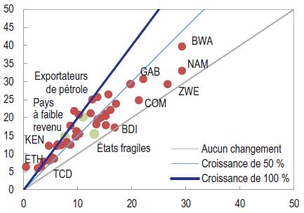 Avec une croissance du PIB prévue à 5,1% en 2014 et à 5,4% en 2015, dans la bonne moyenne de la dynamique africaine, avec encore une croissance du PIB hors pétrole attendue à 7,6% en 2015, en progression de 0,4%, le Gabon conservera à moyen terme des perspectives robustes en dépit d’une baisse attendue de la production de pétrole. « La croissance devrait être portée par l’investissement public, les ressources naturelles hors pétrole et les services. Plusieurs projets en cours dans l’agro-industrie, les mines et le traitement du bois devraient soutenir la croissance non pétrolière attendue », peut-on lire dans la déclaration officielle du FMI.