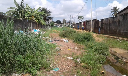 Partant de Bambouchine,cette voie secondaire conduit non seulement au Lycée Jean-Baptiste Obiang Etoughe,mais aussi à la Nationale.Les élèves de cet établissement sont confrontés à d’énormes difficultés.Le lycée,aux dires d’un des responsables de l’Association des parents d’élèves,l’établissement aurait été construit sur un terrain marécageux.La dégradation des infrastructures s’accélère,les herbes envahissent les alentours de la barrière et bonjour l’humidité.Les apprenants se retrouvent parfois les pieds dans la boue."Nous sommes déjà habitués.Les responsables sont impuissants face à ce phénomène.Nos chaussures se salissent chaque fois.Quand il pleut,c’est gâté ! Que voulez-vous ? Ainsi va notre lycée" dit ironiquement un élève de 1ère.