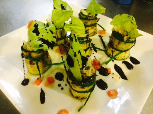 Courgettes roulées au fromage de chèvre et sa réduction balsamique