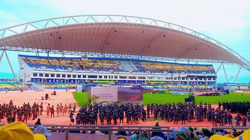 Dès l’aube, des milliers de citoyens avaient pris d’assaut les abords du stade, certains venus de provinces éloignées, témoignant de l’attachement profond du peuple à ce moment décisif. Jamais une investiture n’avait mobilisé une telle marée humaine. Chants patriotiques, danses, drapeaux aux couleurs nationales : tout exprimait la fierté d’un peuple témoin de son propre sursaut.