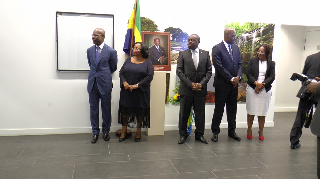 A l’entrée de la Chancellerie, le drapeau tricolore (vert, jaune, bleu), le célébrissime artiste gabonais, Isaac John, introduit par Joëlle Ndong, journaliste et reporter à TV5 Monde, a entraîné l’assistance dans la mélodie de l’hymne nationale « la Concorde ».