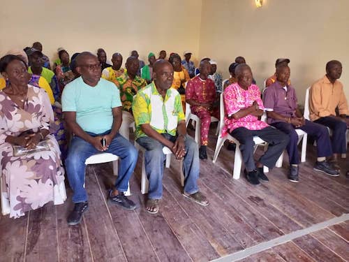 Koulamoutou/ Jacques Lebama échange avec les auxiliaires de commandement sur le Oui du référendum.