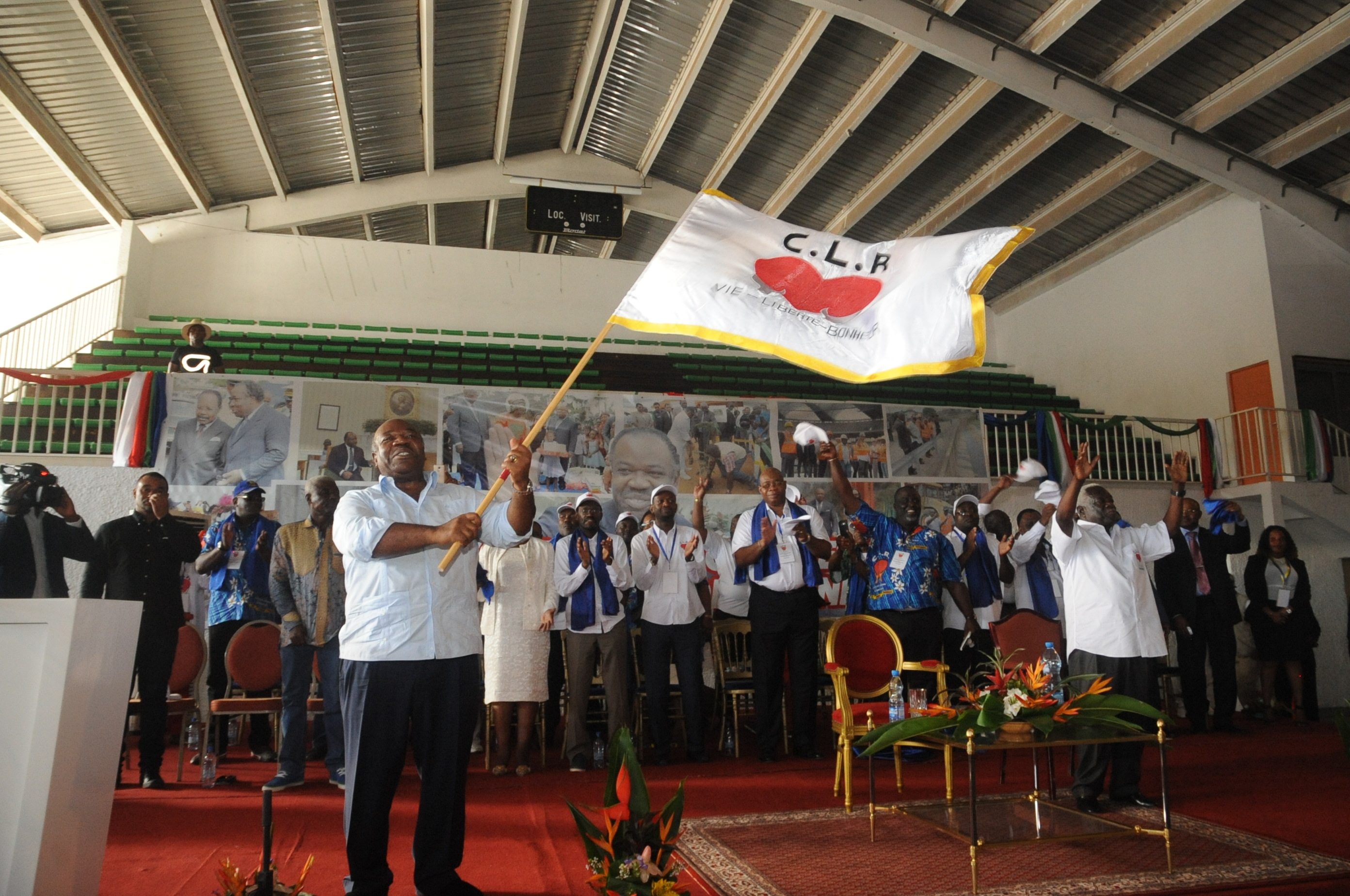 Communiqué de Presse: Libreville, le 7 mai 2016, le candidat du Parti démocratique gabonais (PDG) à l’élection présidentielle de 2016, Ali Bongo Ondimba, a été l’hôte ce samedi du Congrès extraordinaire du Centre des libéraux réformateurs (CLR), au cours duquel il a reçu l’investiture officielle de ce parti pour l’élection présidentielle de 2016.