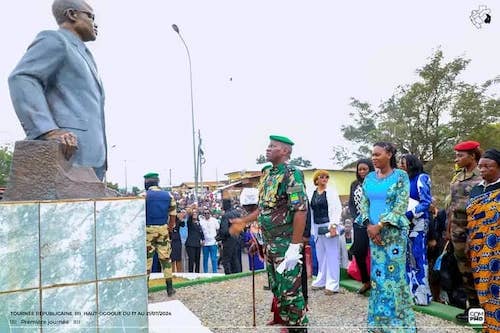 Dès leur arrivée, le couple présidentiel s’est rendu à Boumango, marquant ainsi le début de leur visite. De retour, ils ont été s’incliner devant le mausolée d’Eugène Amogho, une figure emblématique de la province, témoignant ainsi de leur respect pour sa mémoire.