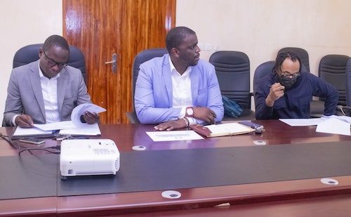 Guy Patrick Obiang en séance de travail avec les importateurs du secteur pharmaceutique national