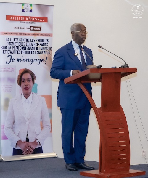 Le Premier Ministre, Raymond Ndong Sima, a pris part, ce Mercredi 22 janvier 2025, à la clôture du segment de haut niveau de l’atelier régional consacré à l’élimination des produits cosmétiques éclaircissants. Organisé autour du thème « Les produits cosmétiques éclaircissants pour la peau, une préoccupation de la Santé Publique en Afrique", cet événement souligne l’urgence de lutter contre ces produits nocifs.