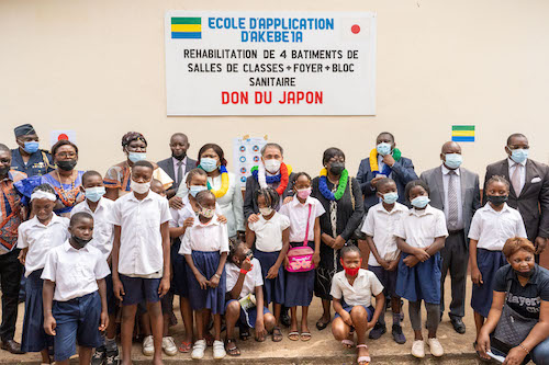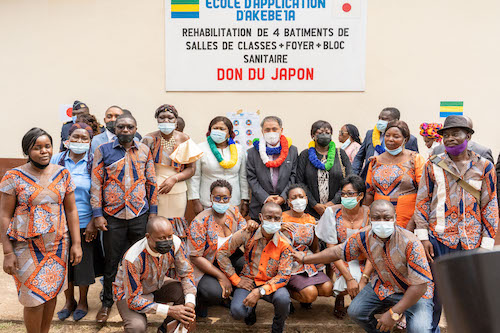 L’Ambassadeur du Japon Shuji Noguchi et Rolande Moubouassi Nziengui , Directrice de l’Ecole Publique d’Akébé 1/A ont procédé le 09 décembre 2021 à la cérémonie de remise de don pour « Le Projet de Réhabilitation de l’Ecole Publique d’Akébé 1/A » financé par le Japon pour un montant de 77.673 € soit près de 51 millions de Francs CFA dans le cadre du programme de coopération bilatérale dénommé les « Dons aux micro-projets locaux contribuant à la sécurité humaine ».
