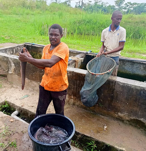 Après six mois d’élevage, les femmes de l’association Mouetse ont procédé, sous les regards témoins de certaines autorités telles que le Directeur Provincial de la Pêche, l’association a procédé au premier jet de pêche et de vente des silures et tilapias qui avaient déjà atteint leur maturité. "Ce fut un immense plaisir et une expérience satisfaisante d’avoir contribué et participé à cette belle expérience qui est l’élevage de poissons hors sol" témoigne Sabine Marcelle Matchiendy.